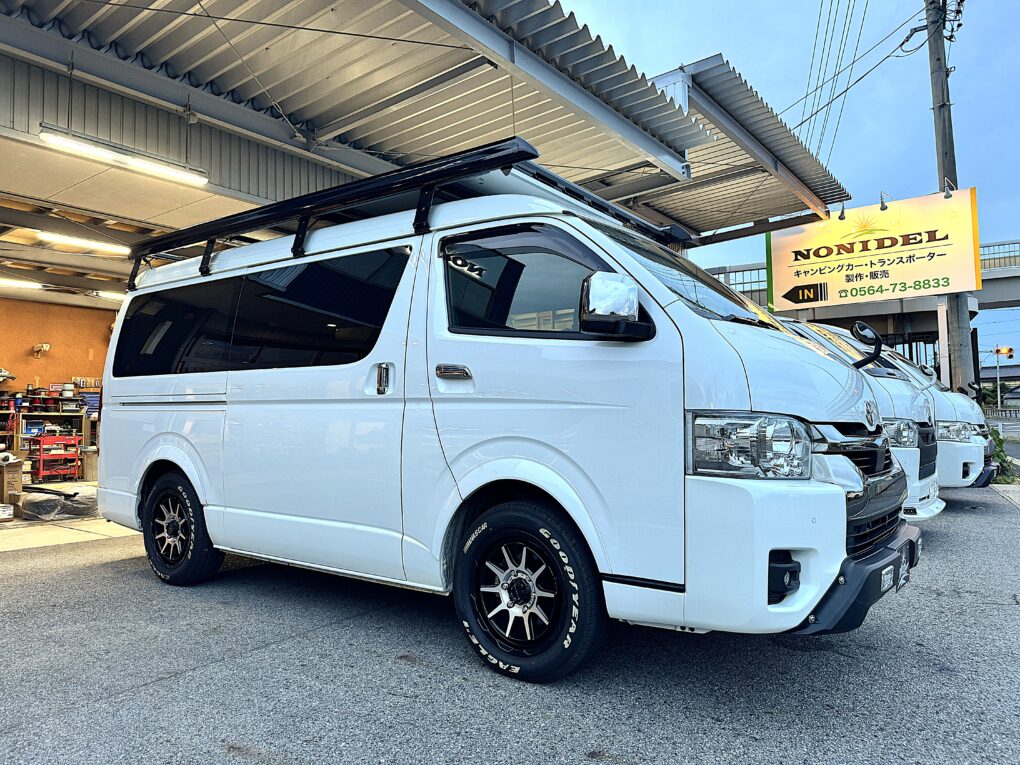 ワイドミドルのガソリン4WDをベースに車内でのデスクワークと、休日の遊びにフル活用できるハイエースが完成しました!
