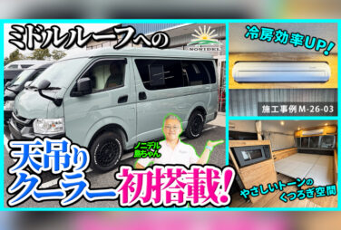 【ミドレンジャーの進化版!?】天吊りクーラー搭載・2人旅に最適化したワイドミドルハイエース